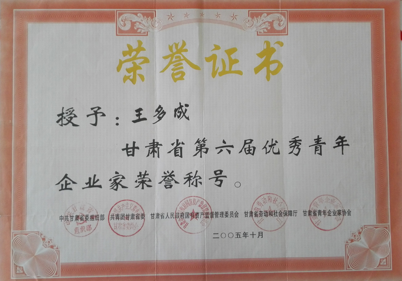 甘肅省第六屆優(yōu)秀青年企業(yè)家